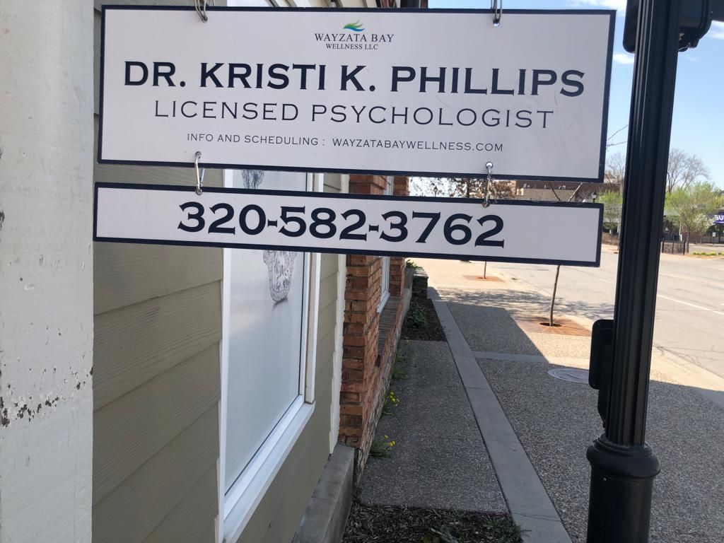 My office is located up the stairs and the second door on the left and it is marked Dr. Kristi K. Phillips and Suite #204.
